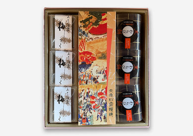 黒わらび餅3ヶ、松露饅頭12ヶ、梅しづく3ヶの詰め合わせ